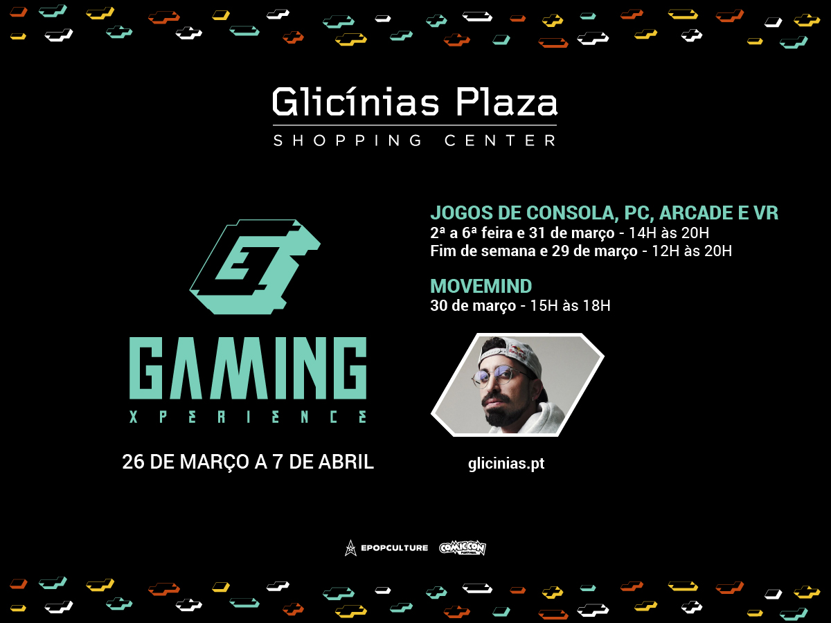 De 26 de março a 7 de abril, o Glicínias Plaza recebe o evento Gaming Xperience, um evento com o cunho da Epop Culture e apoio da Comic Con Portugal, onde jogar se transforma numa experiência super divertida e diferente.